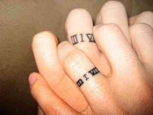 Puedes elegir varias posibilidades. Por ejemplo, en la foto se puede una idea: tatuar la fecha de la boda en números romanos, una buena opción. Pero además, hay otras posibilidades, como elegir un diseño de alianza bonito para tatuarlo…